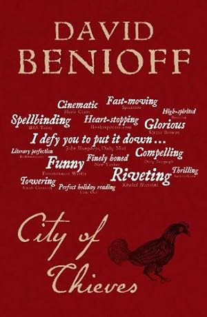 Four months into the siege of Leningrad, the city is starving. Seventeen-year-old Lev fears for his life when he is arrested for looting the body of a dead German paratrooper, while his charismatic cellmate, Kolya, a handsome young soldier arrested for desertion, seems bizarrely unafraid.